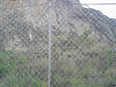 后者的安裝部分主要可以分為:測量定位---基挖開挖---基座安裝---鋼柱及上側拉鎖繩安裝---側拉錨桿安裝---上下支撐繩安裝---驗收---格柵安裝---拉網。